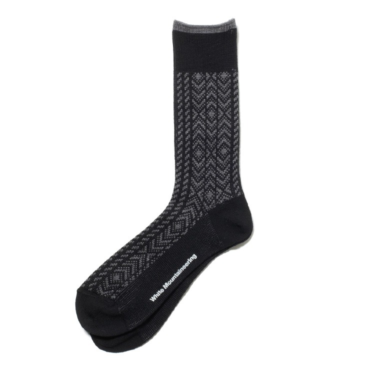 White mountaineering / STRIPE JACQUARD MIDDLE SOCKS[BLACK]¥2,500+tax