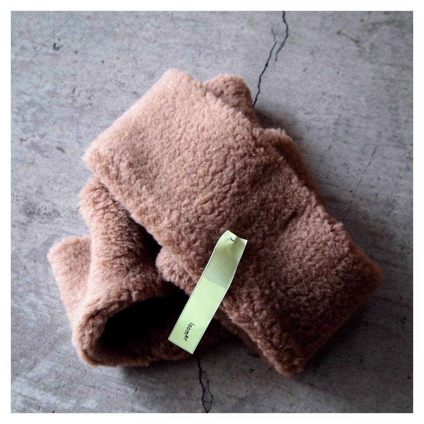 和歌山にてパイル生地を編み立て仕上げにフェルト化させ表情のある生地に。