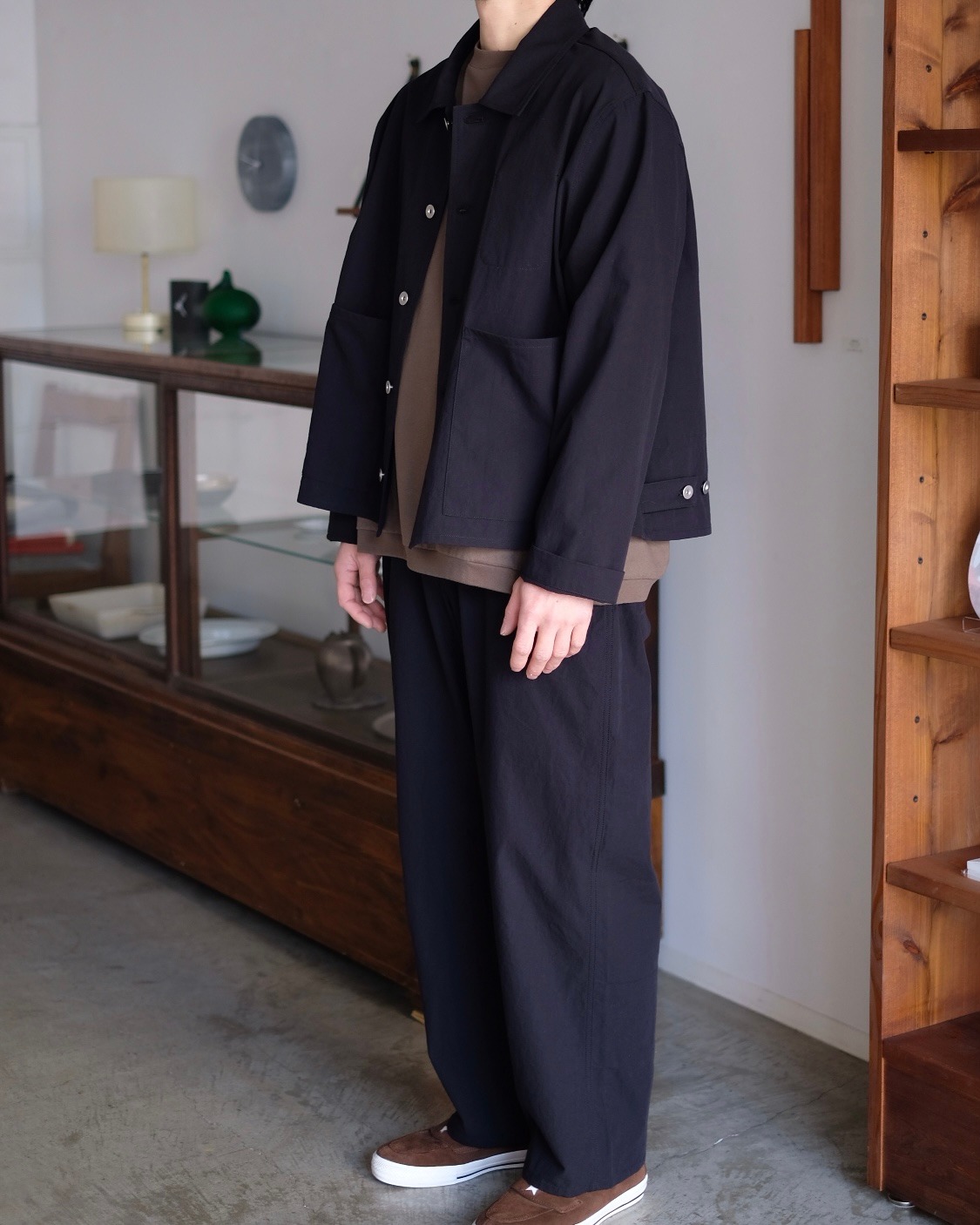 holkらしい身幅たっぷりのデザインですが、着丈はスッキリしていますので様々なシルエットのボトムスとも相性が良いアイテムです