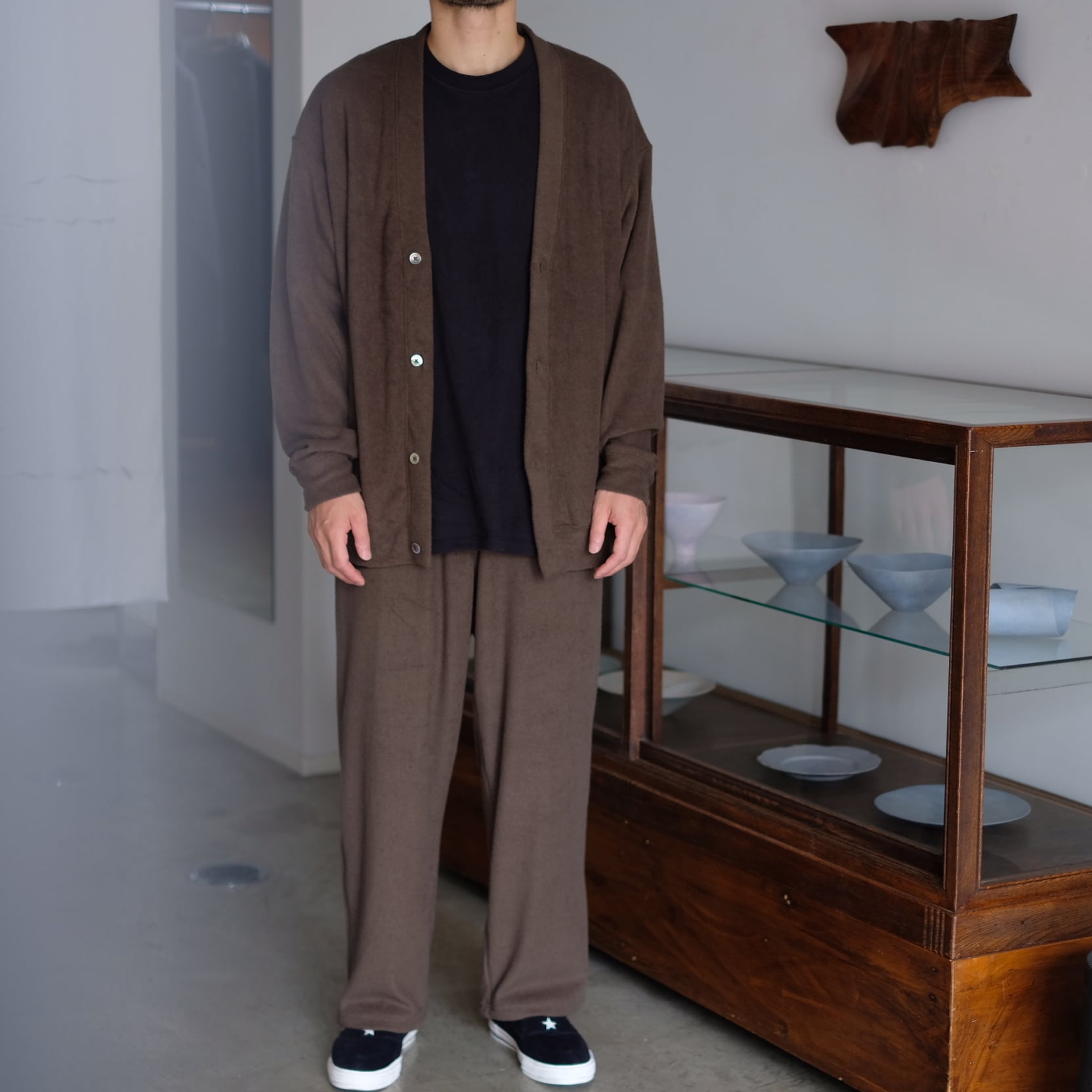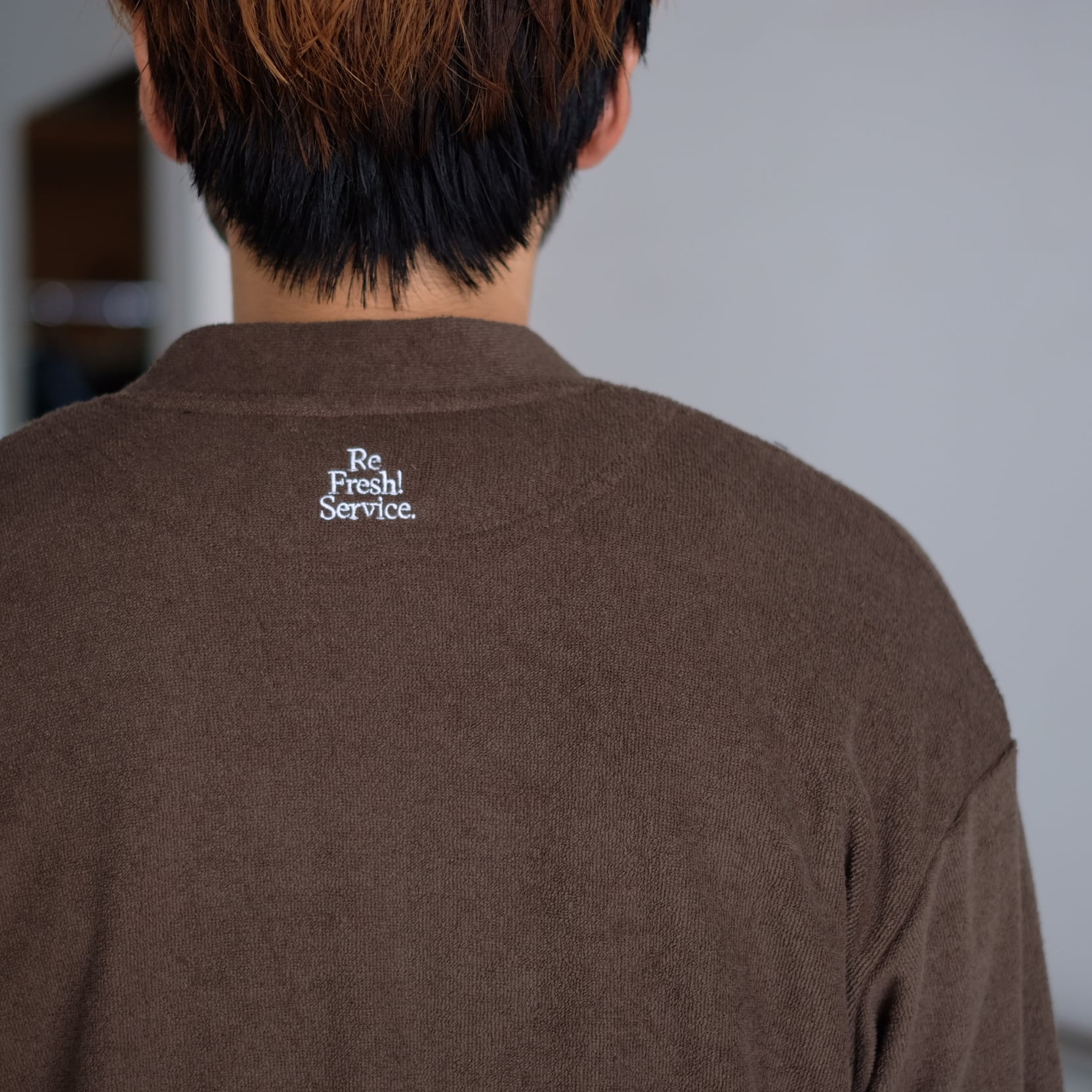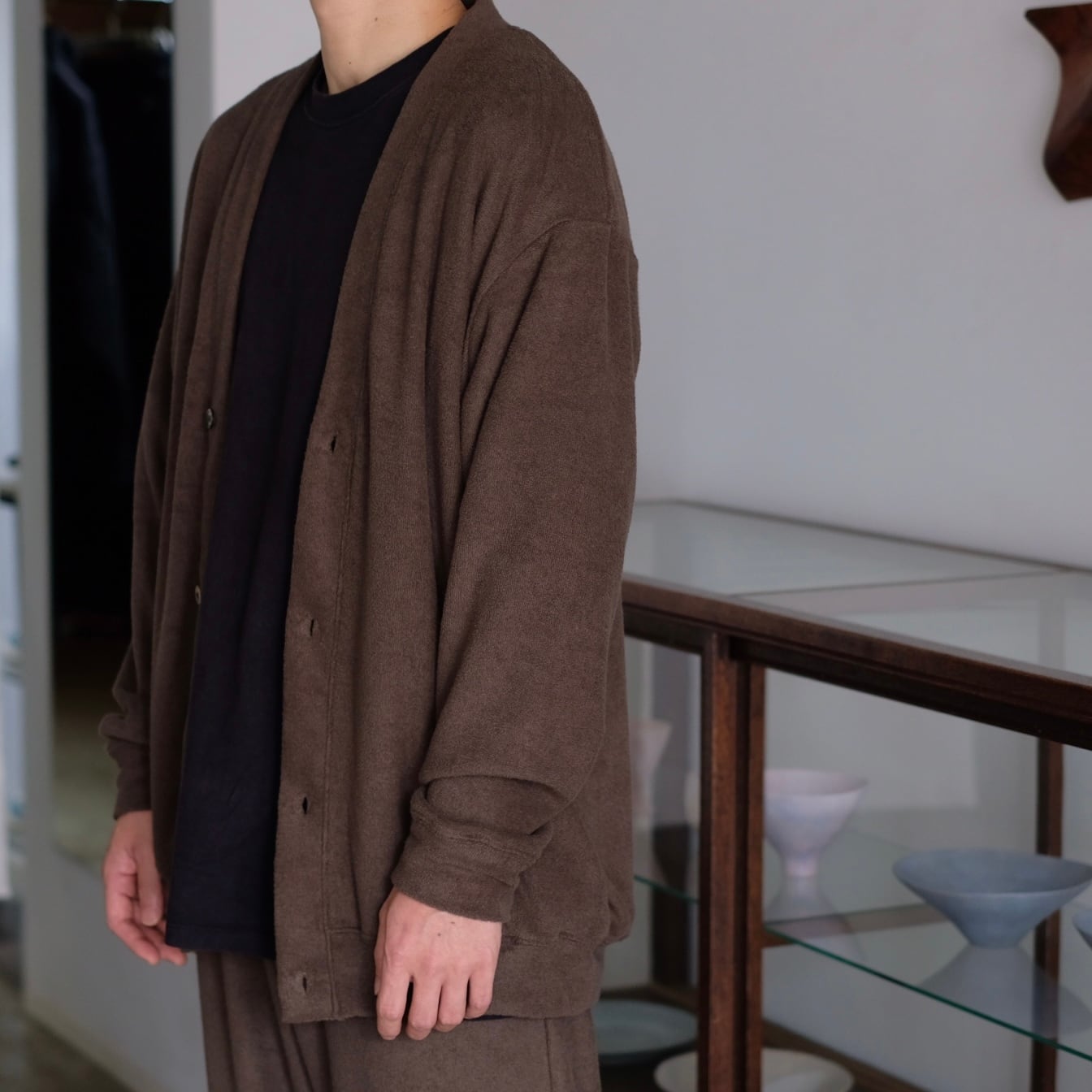 柔らかな肌触りでリラックス感溢れるパイル地を使用したReFresh!Serviceのカーディガンとイージーパンツのセットアップ。ゆったりとしたサイジングで伸縮性も抜群。通気性も良くルームウェアとしても快適。