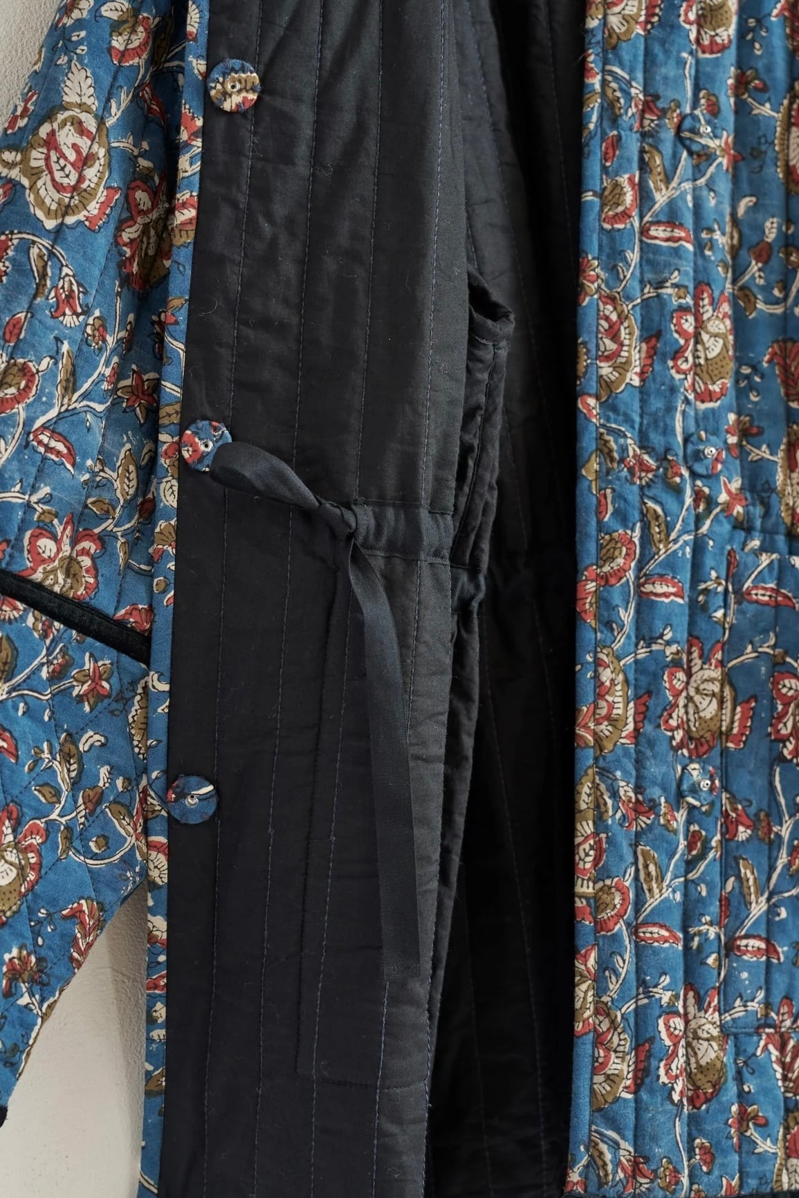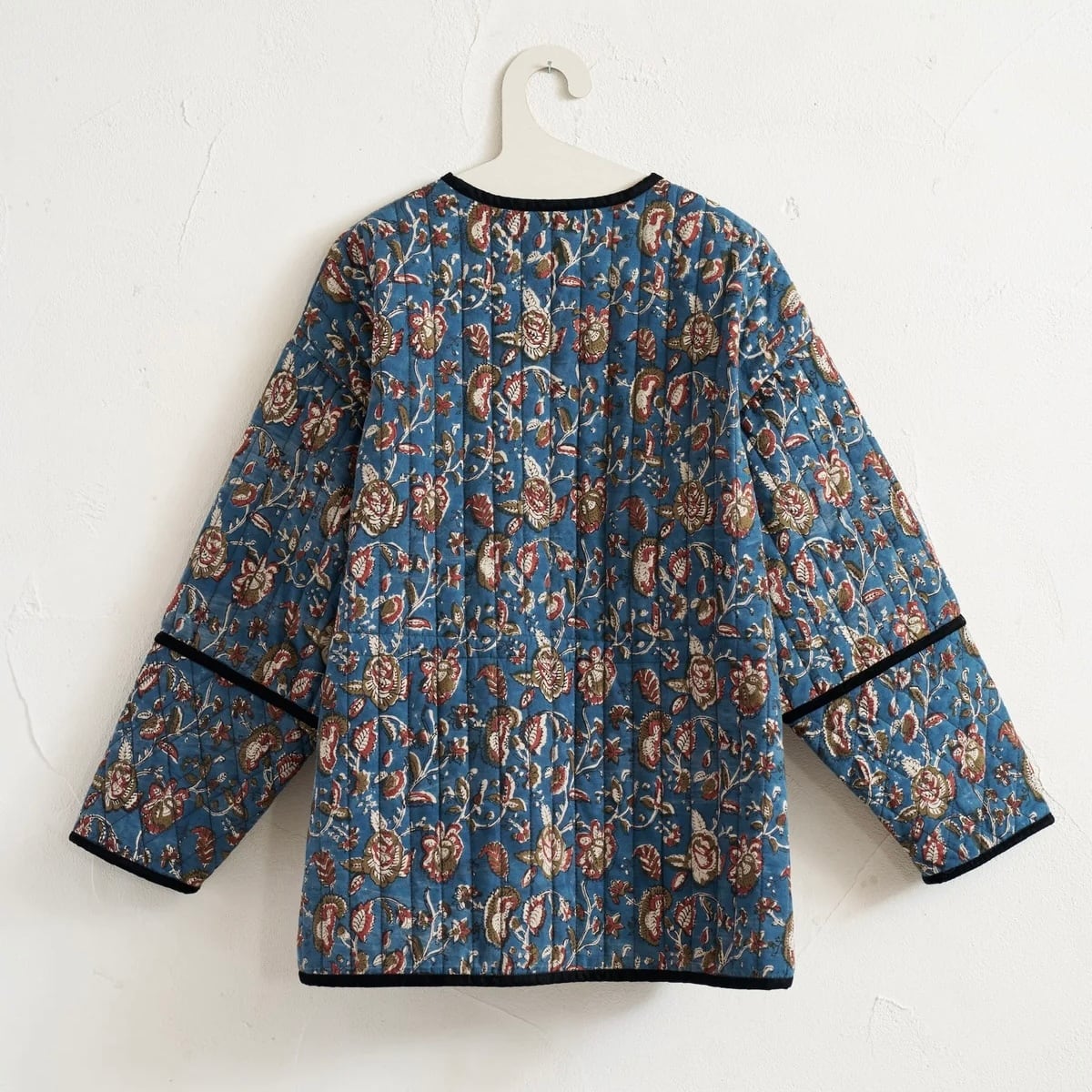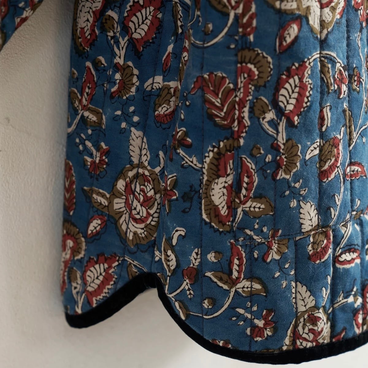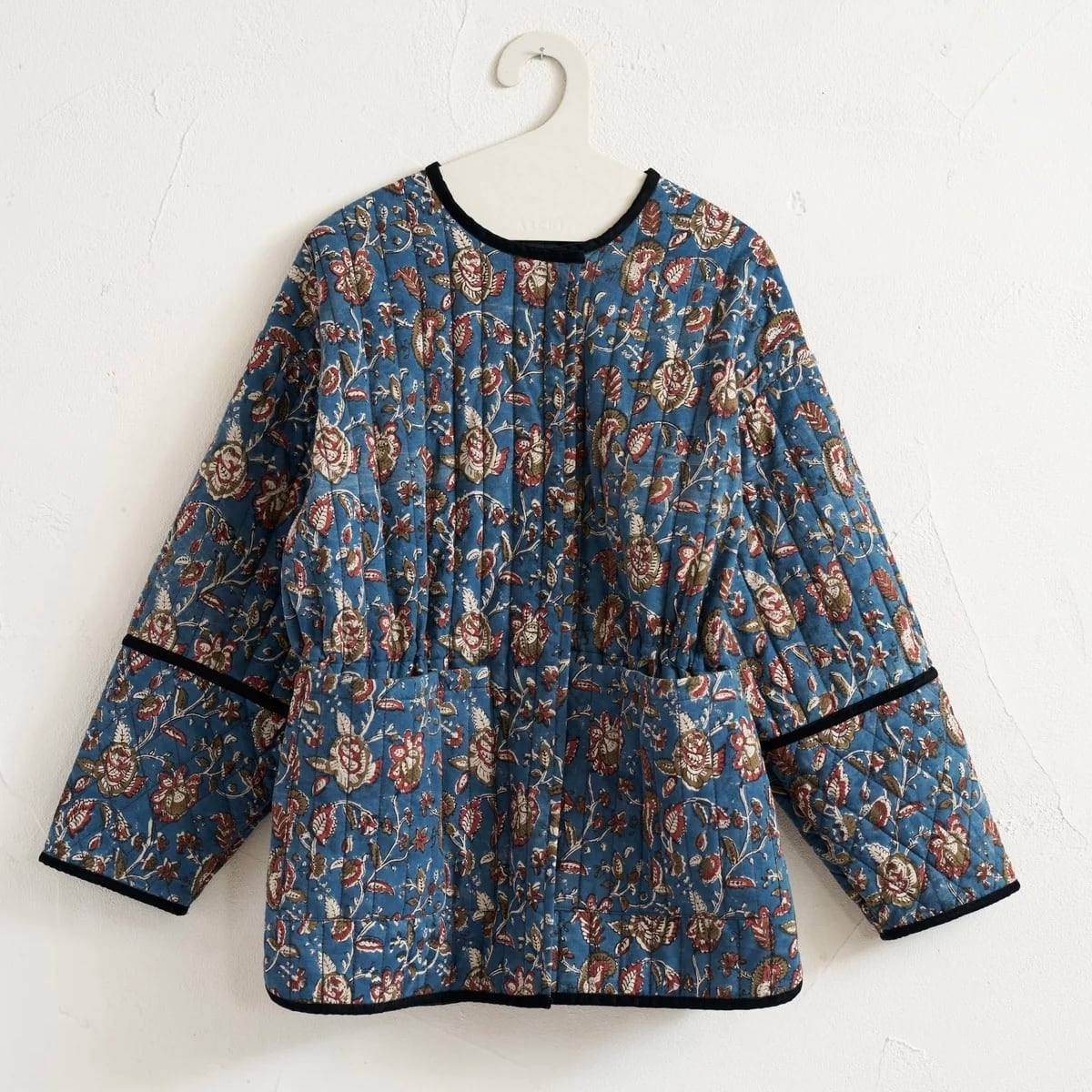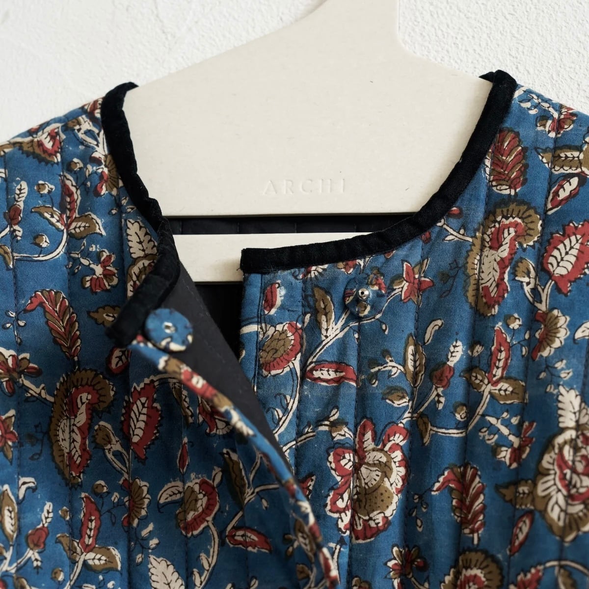 インドの伝統工芸であるブロックプリントの生地を、ふっくらとしたキルティング仕立てに。