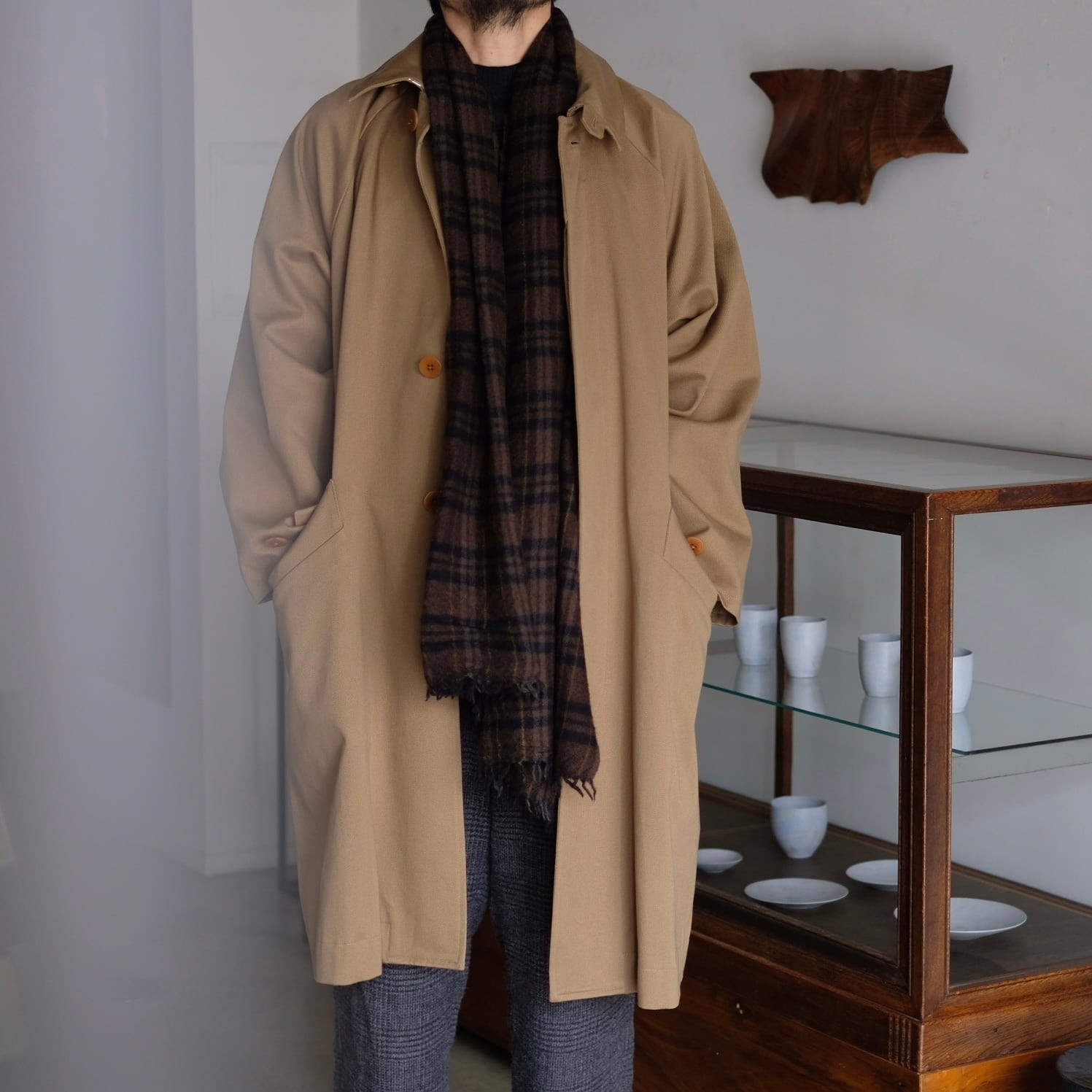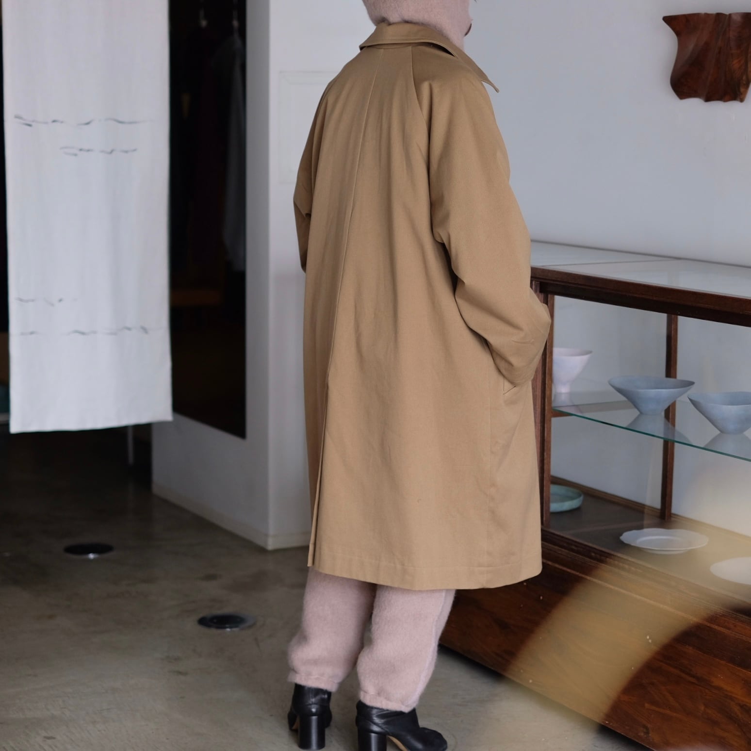 ドライタッチな空紡糸を使用し、着用~お洗濯を繰り返すことで凹凸感が増し生地の表情が良くなっていきます。製品加工により使い込まれたようなソフトな質感も魅力のコートです。