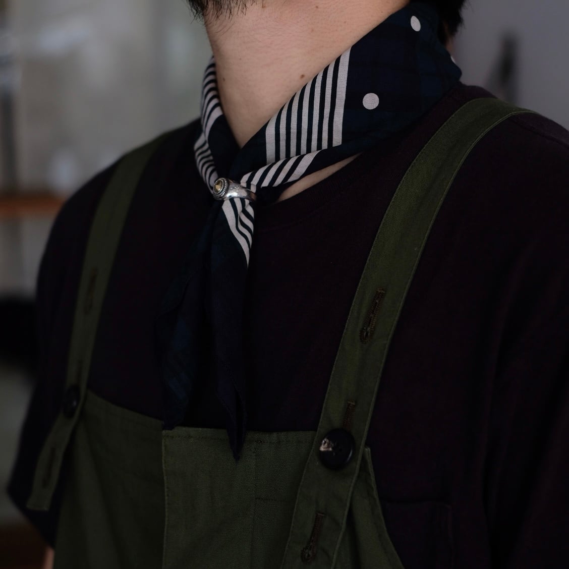 首元やポケット、バッグへのアクセントとしてはもちろん、スタイリングにさりげない奥行きを加える一枚。季節を問わず取り入れやすいバランスも魅力です。