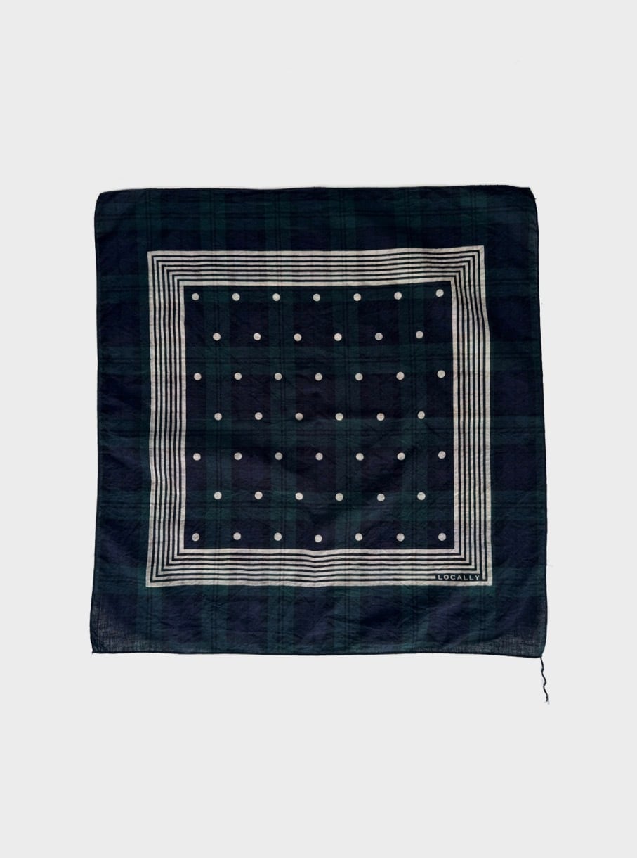 LOCALLY / Cotton Linen Black Watch on Print Bandana