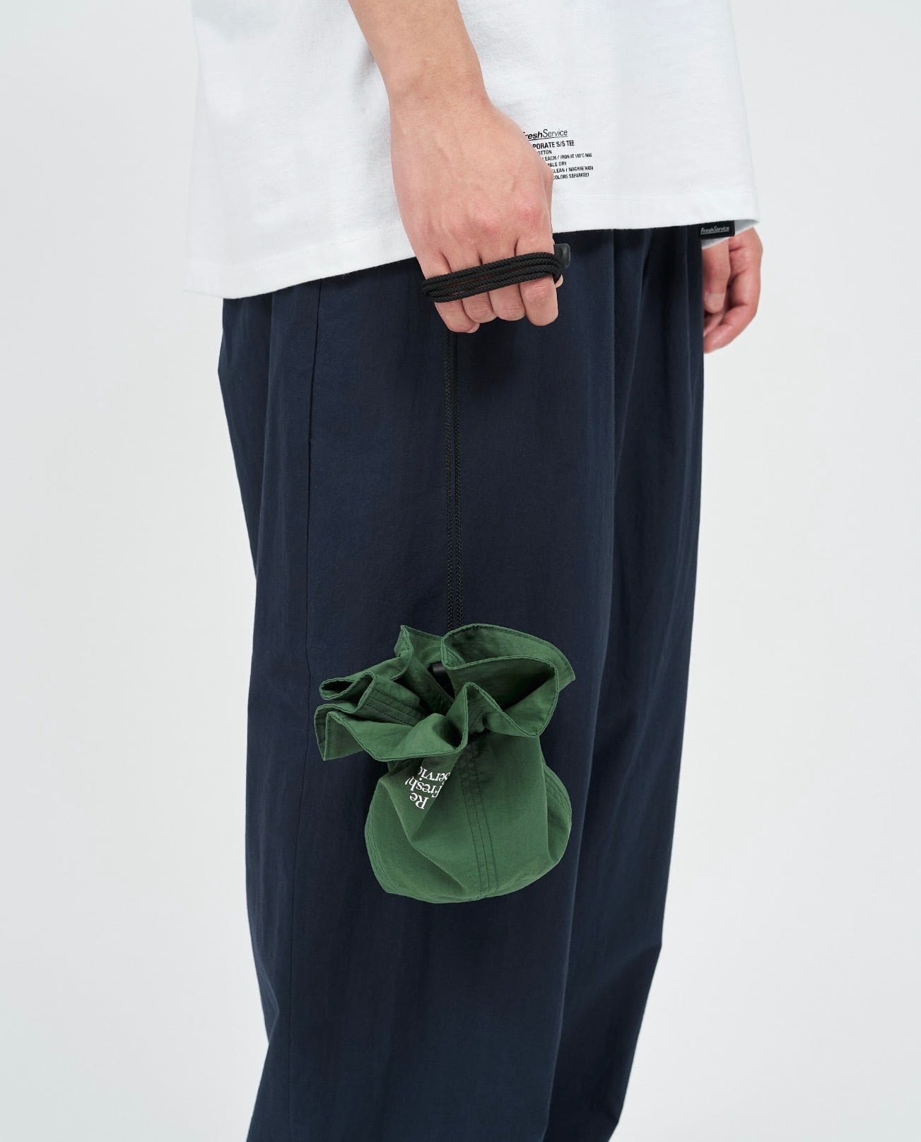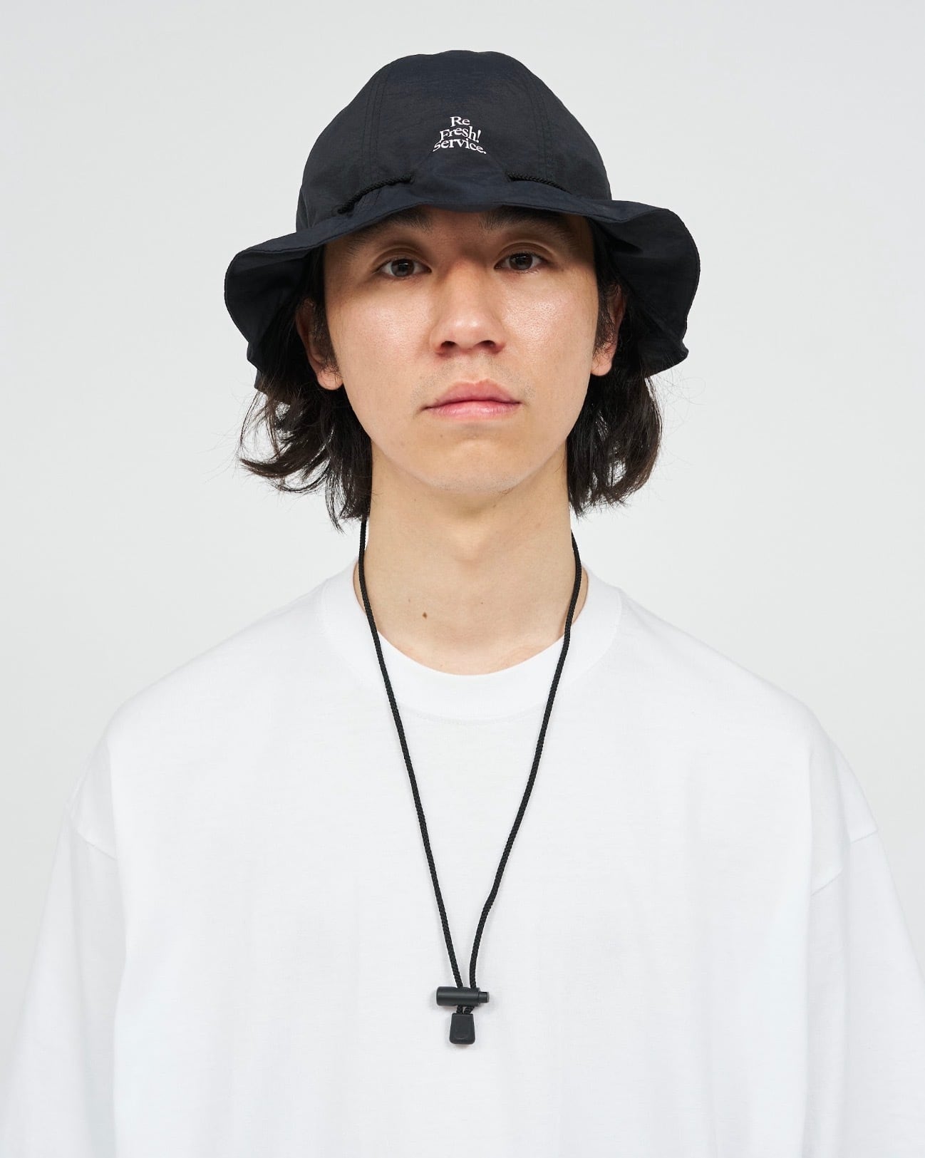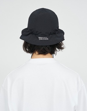 軽量かつ速乾性に優れたナイロン素材を使用したバケットハット。 ブリムに配したドローコードによりフィット感の調整が可能で、風の強い日も安心の設計。 内側に収めてコードを絞れば、ポーチとしても活用できる2WAY仕様。 気軽な持ち運びと着用をシームレスに繋ぐ、アウトドアにも馴染むユーティリティアイテム。 素材 : ナイロン 100% SIZE : FREE (頭囲~66cm) PRICE : ¥6,500+tax