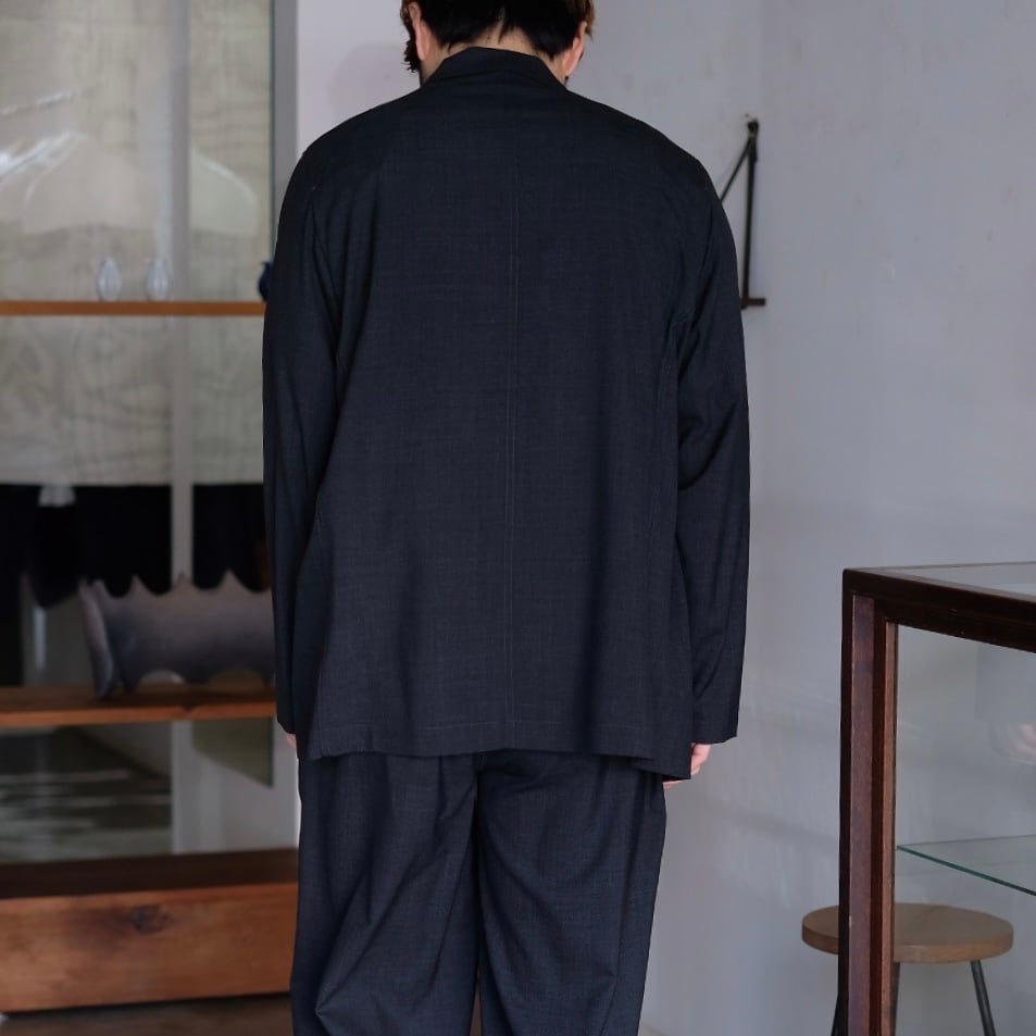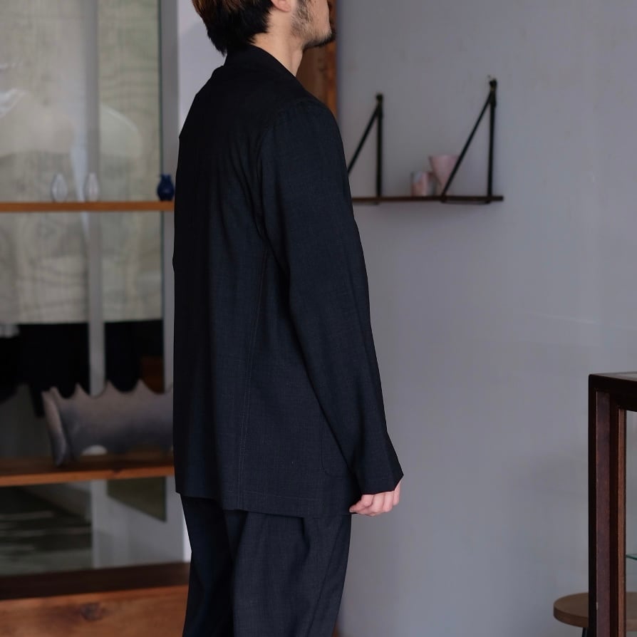 構造は極めてミニマル。裏地や過度な副資材を排し、ジャケットでありながらシャツやカーディガンのような軽やかさを実現しています。