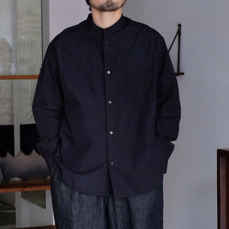 loomer / Suvin Cotton Band Collar Shirt[BLACK]