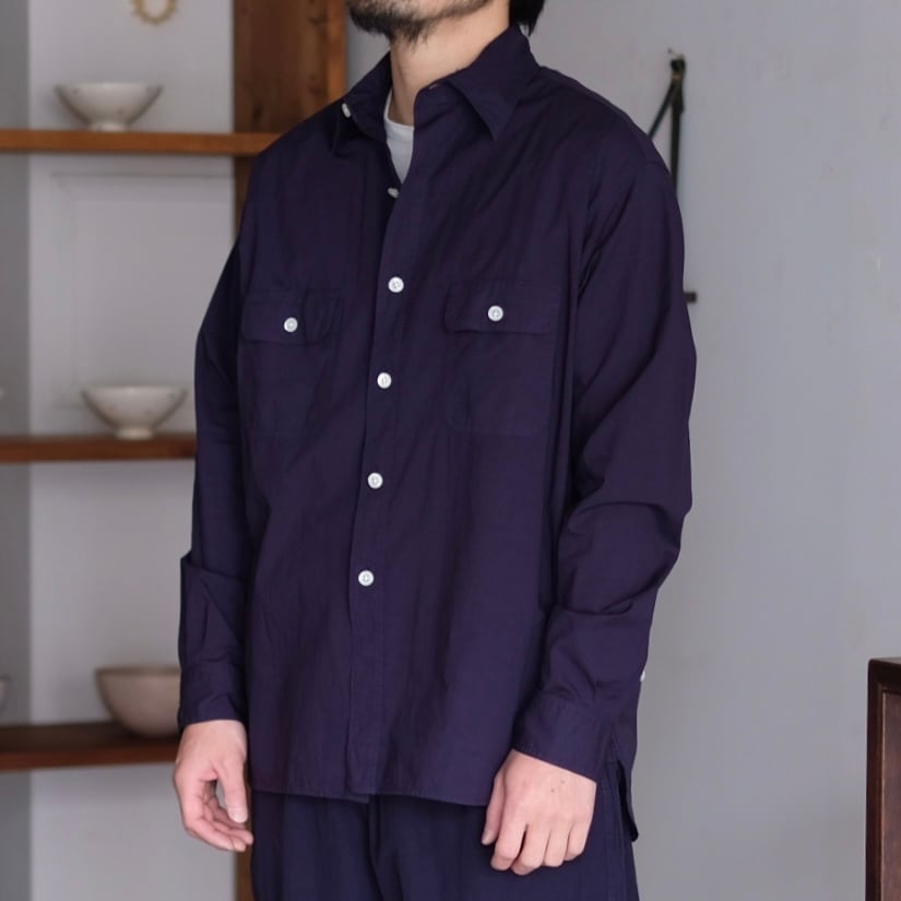 VINTAGEのワークシャツに見られる実用的なディテールを着想源に、ミニマルなバランスで再構築したフィールドシャツ。